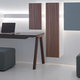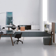 Het bureau, gemaakt van een stevige houten constructie, is verkrijgbaar in zowel rechthoekige als ronde uitvoeringen, waardoor flexibiliteit wordt geboden voor verschillende werkplekbehoeften. De collectie heeft drie onderscheidende afwerkingen, elk met een unieke stijl: een steenblad voor een gedurfde en elegante uitstraling, een glazen blad voor een minimalistische en strakke look, en een houten blad voor een moderne maar warme interpretatie van traditioneel kantoorontwerp.